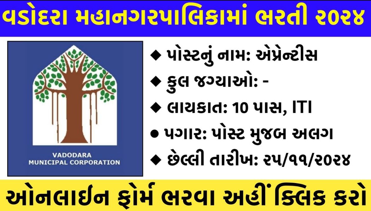 Vadodara Municipal Corporation Recruitment 2024: for Various Apprentice Posts Apply Online : VMC (Vadodara Municipal Corporation) Has Announced The Recruitment For The Various Post . Read This Article Carefully For Detailed Notification And Form Filling Information. In The Article How To Fill The Form, Educational Qualification, Age Limit, Location Information Etc. Is Given Systematically And In Details. Vadodara… Read More »